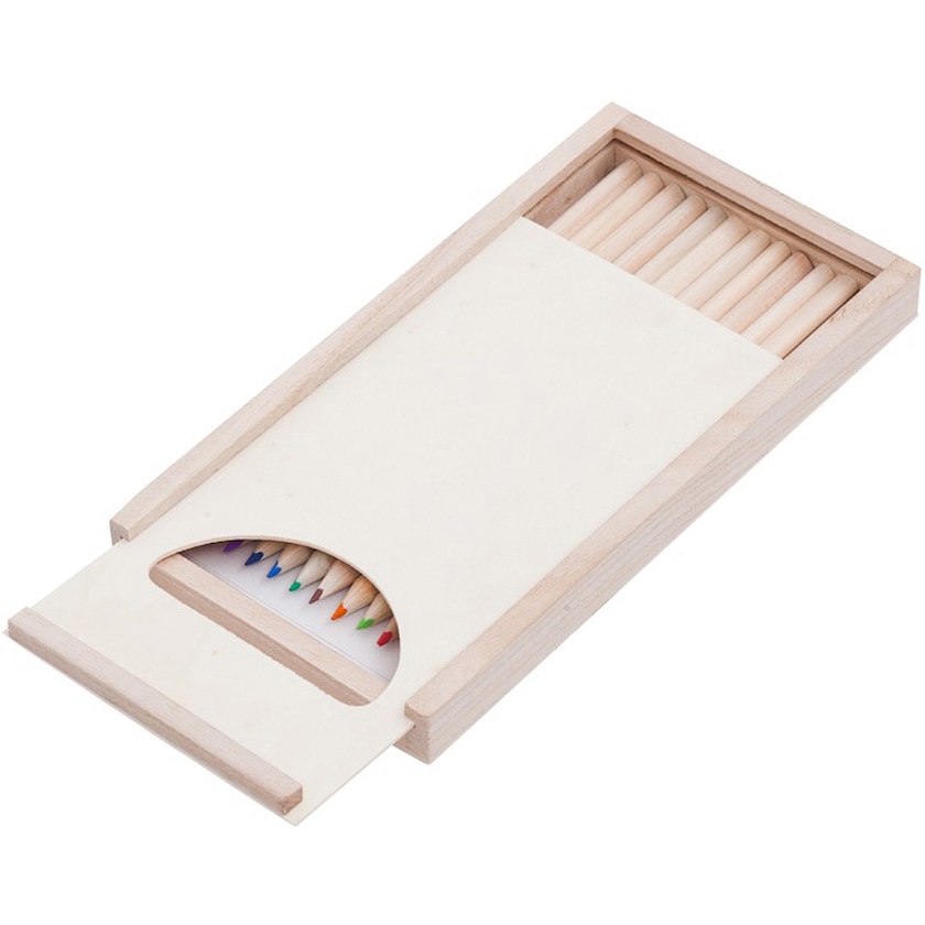 Set con 12 pastelli e 6 fogli con motivi prestampati. Il set viene fornito in una bella confezione in legno. Viene personalizzato la scatola in legno.