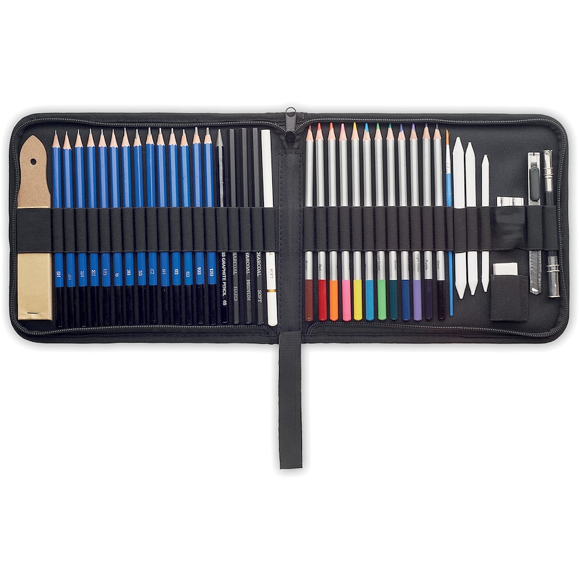 Pregiato set da disegno. Il set viene consegnato in un astuccio in rPET dotato di cerniera. Contiene tutto il necessario per l'artista del futuro.