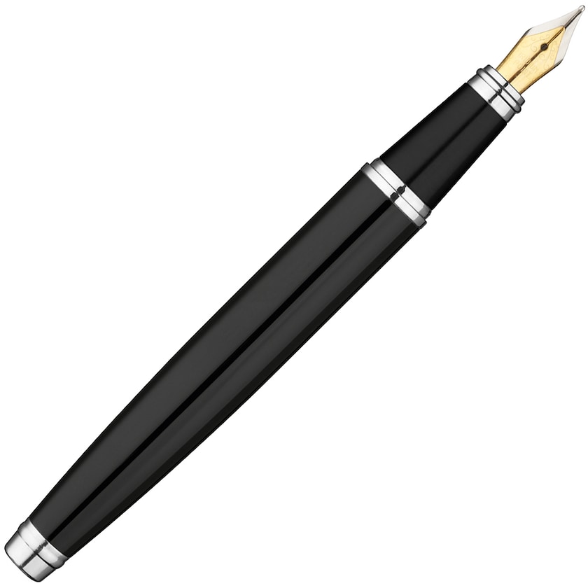 Esclusiva penna stilografica con cappuccio. Con fusto nero e dettagli cromati. Ordina le tue penne stilografiche con logo da Axon Profil!