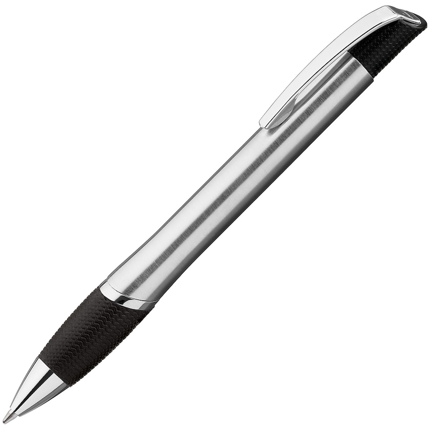 Penna di metallo dal design moderno, con impugnatura gommata. Questo modello ha dettagli di metallo cromati ed è disponibile in vari colori.