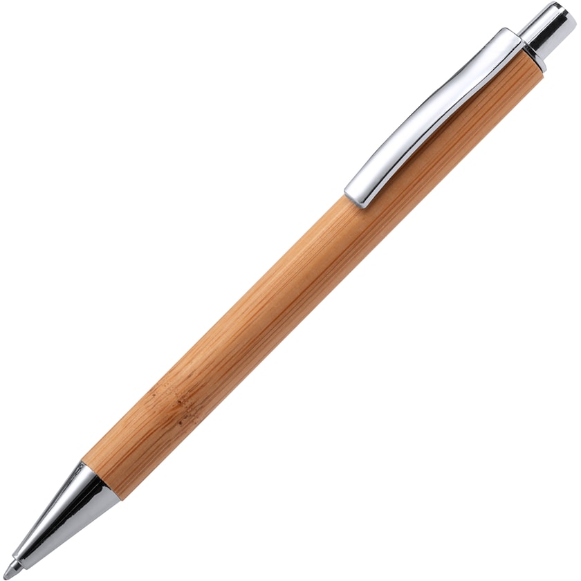 Penna in vero bambù con dettagli in metallo. La penna Simone è dotata di inchiostro nero. Il logo può essere stampato oppure inciso a laser. Una penna di design dall'aspetto naturale.