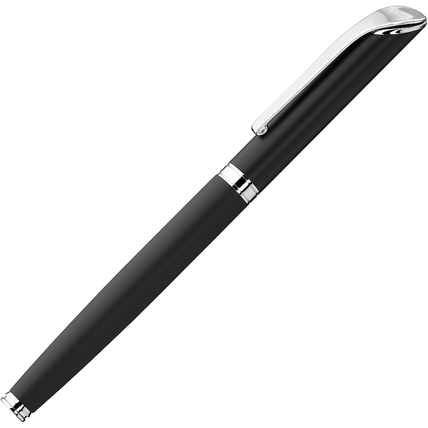 Esclusiva penna di metallo con cappuccio. Una penna a sfera con rivestimento opaco. Con punta e dettagli in metallo cromato opaco.
