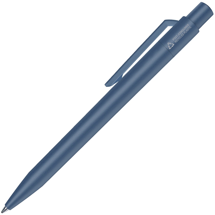 Penna pubblicitaria in 100% plastica ABS riciclata. La stampa può essere realizzata o sul corpo della penna o sul suo grande fermaglio.