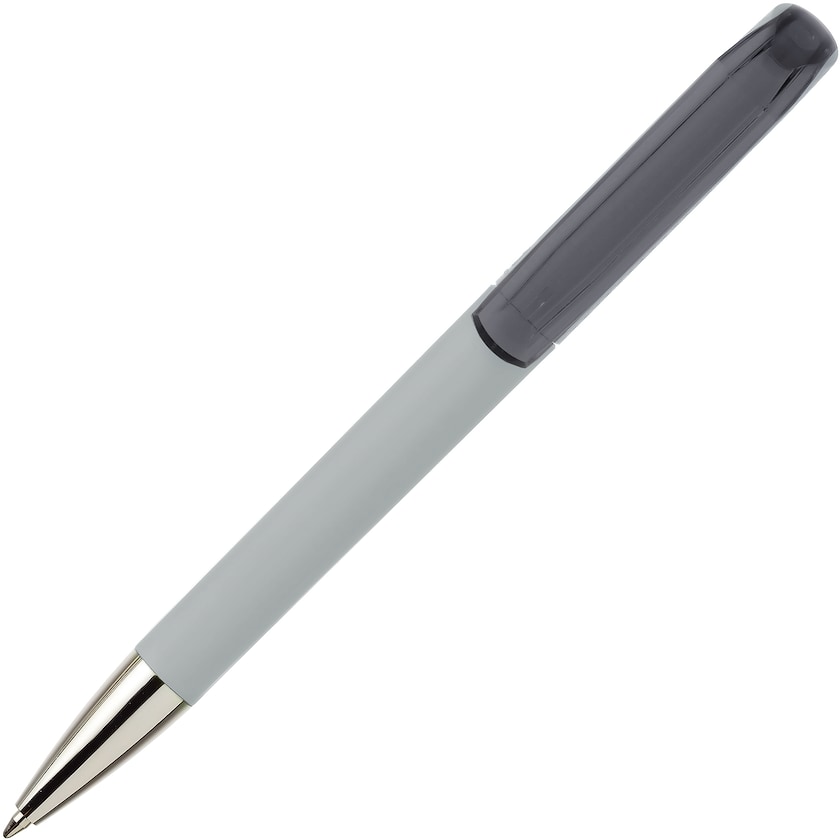 Penna promozionale di alta qualità con superficie gommata La penna ha una punta in metallo e la clip trasparente sulla quale può essere effettuata la stampa.