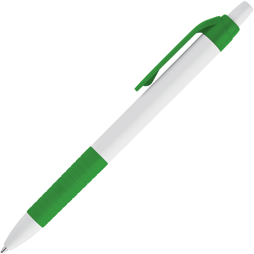 Penna con il corpo bianco è dettagli di colori contrastanti. La penna ha una comoda impugnatura in gomma.