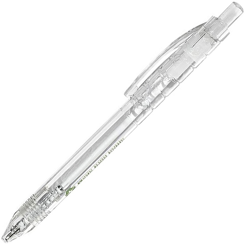 Penna trasparente realizzata con bottiglie PET riciclate.