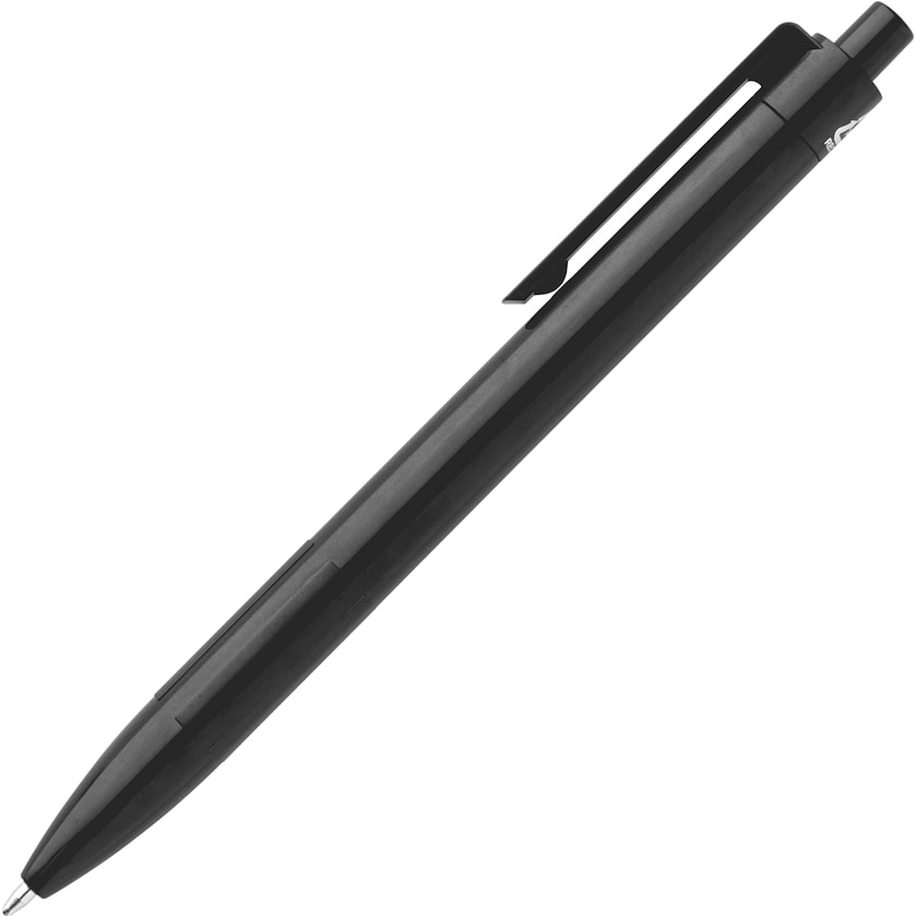 Conveniente penna pubblicitaria in ABS riciclato. La penna ha cartuccia blu ed ha un'impugnatura a coste per un comfort aumentato.