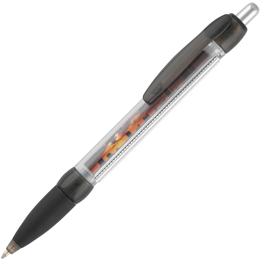 Penna a sfera insolita, con un banner che si srotola dal fusto della penna. Il banner è stampato digitalmente su entrambi i lati. Inoltre è possibile personalizzare con stampa anche il fusto della penna o la clip.
