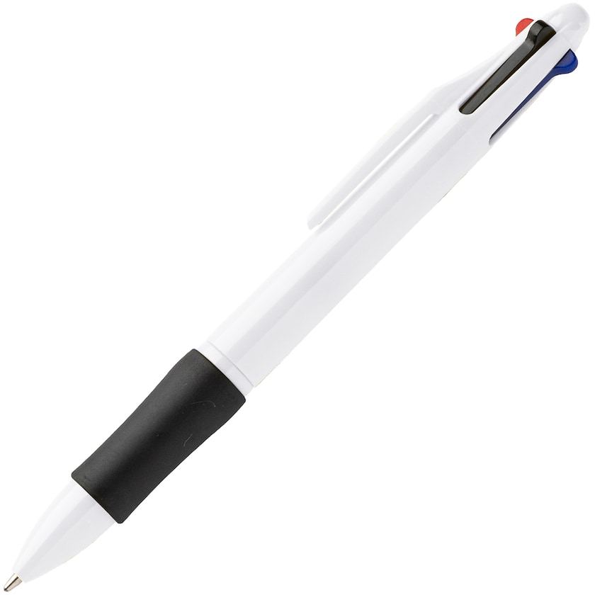 Penna con inchiostro nero, blu, rosso e verde. La penna multicolore Keith ha un'impugnatura gommata che la rende comoda per la scrittura. Realizzata in ABS riciclato.