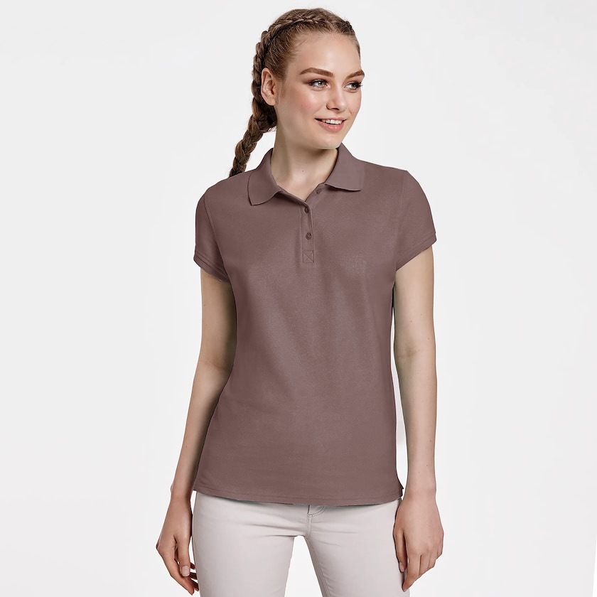 Conveniente polo da donna con consegna super rapida. La polo è realizzata in un tessuto in cotone da 200 grammi e ha tre bottoni sul collo. Le taglie vestono abbastanza stretto quindi consigliamo di scegliere una misura più grande se normalmente sei tra due taglie. Disponibile anche in versione da uomo.