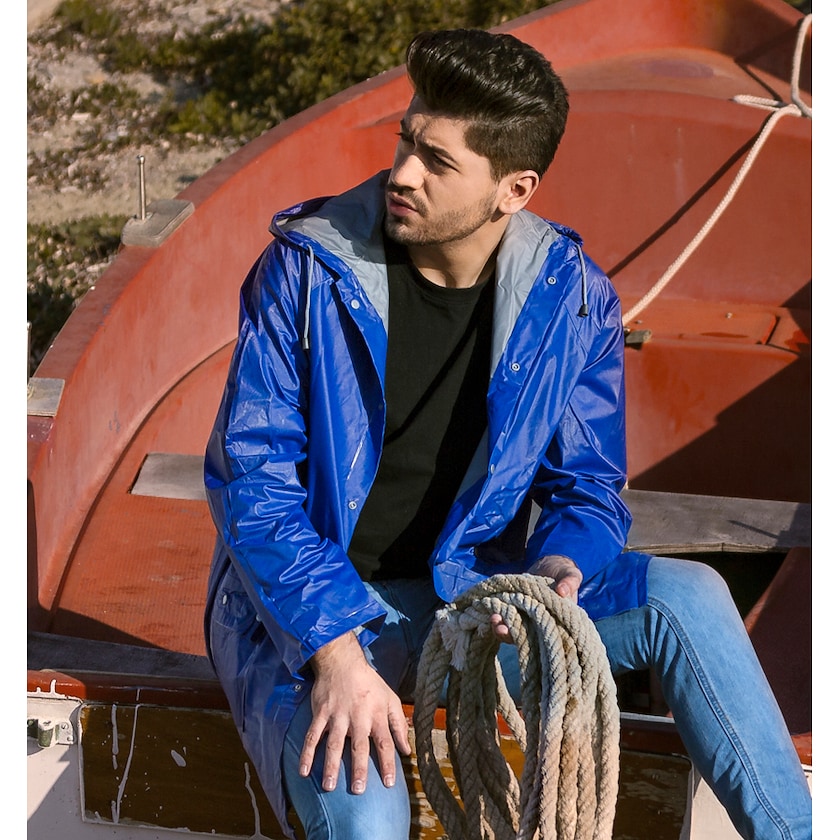 Grande giacca impermeabile di buona qualità. Questa giacca impermeabile è provvista di chiusura a bottoni automatici e ha due tasche sul davanti. È solo possibile la stampa a un colore. Ordina la tua giacca impermeabile personalizzata su Axon Profil!