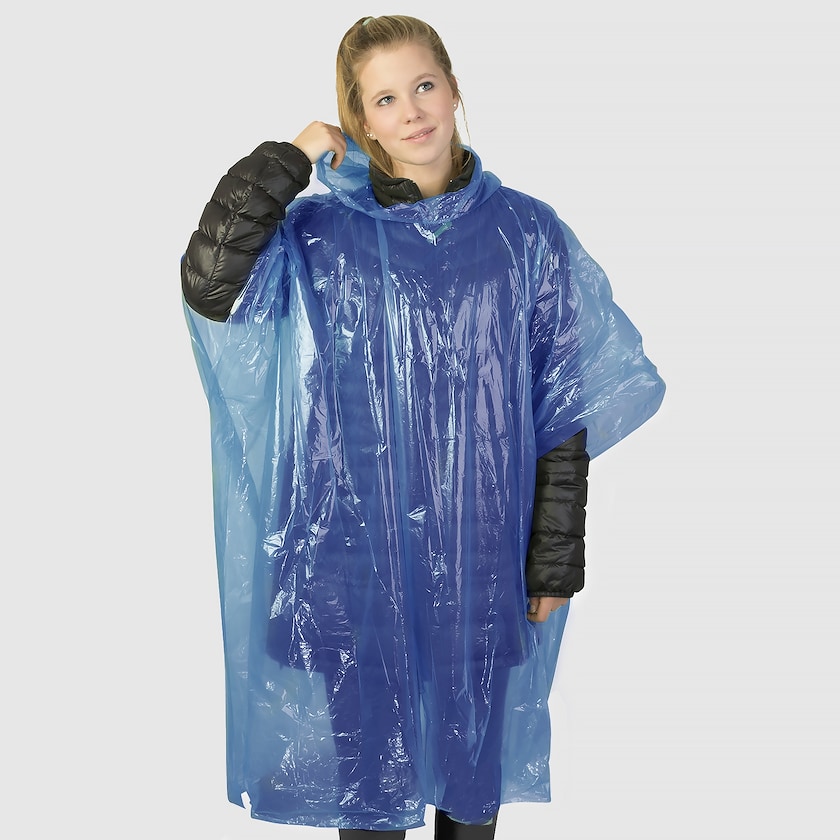 Poncho impermeabile con cappuccio, fornito in una bustina. Disponibile in tanti colori interessanti. La personalizzazione viene effettuata tramite un'etichetta stampata digitalmente che sarà piazzato sulla busta.
