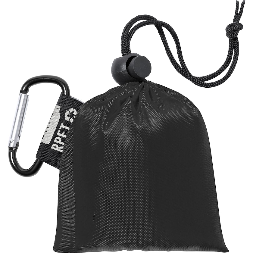 Poncho impermeabile con custodia di materiale ecologico. Questo poncho impermeabile è realizzato in plastica LDPE, mentre la custodia è in rPET, ossia realizzata con bottiglie di PET riciclate. La stampa viene realizzata sulla custodia.