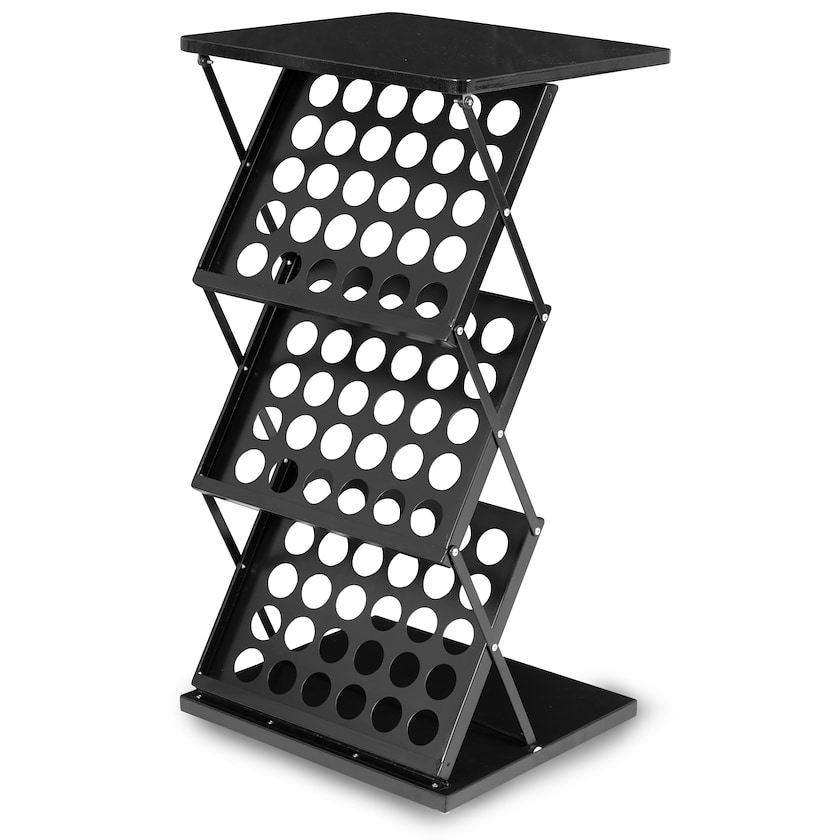 Porta opuscoli per opuscoli di dimensione A3. Vista A3 è realizzato in metallo resistente ed è alto 100 cm una volta aperto. L'apertura è molto semplice e non richiede nessun attrezzo. Ogni scomparto misura 43,7 x 30,5 cm. Il porta opuscoli chiuso misura 11 x 47 x 40 cm. Custodia inclusa. 1 anno di garanzia.