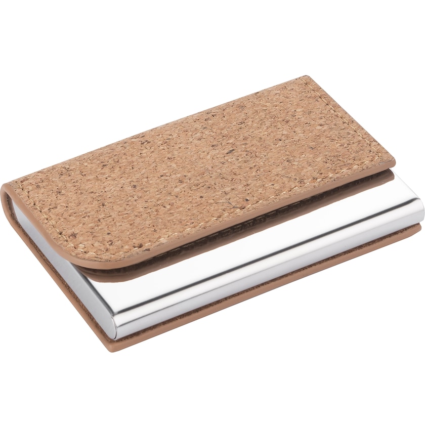 Portabiglietti da visita in metallo e sughero. Questo portabiglietti da visita può contenere fino a 20 biglietti da visita. Si chiude con un magnete. Il logo viene inciso a laser.