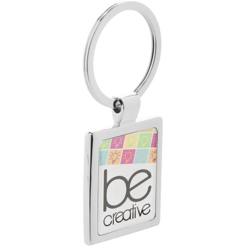Portachiavi cromato in metallo con stampa digitale. Confezionato in elegante scatola regalo nera.