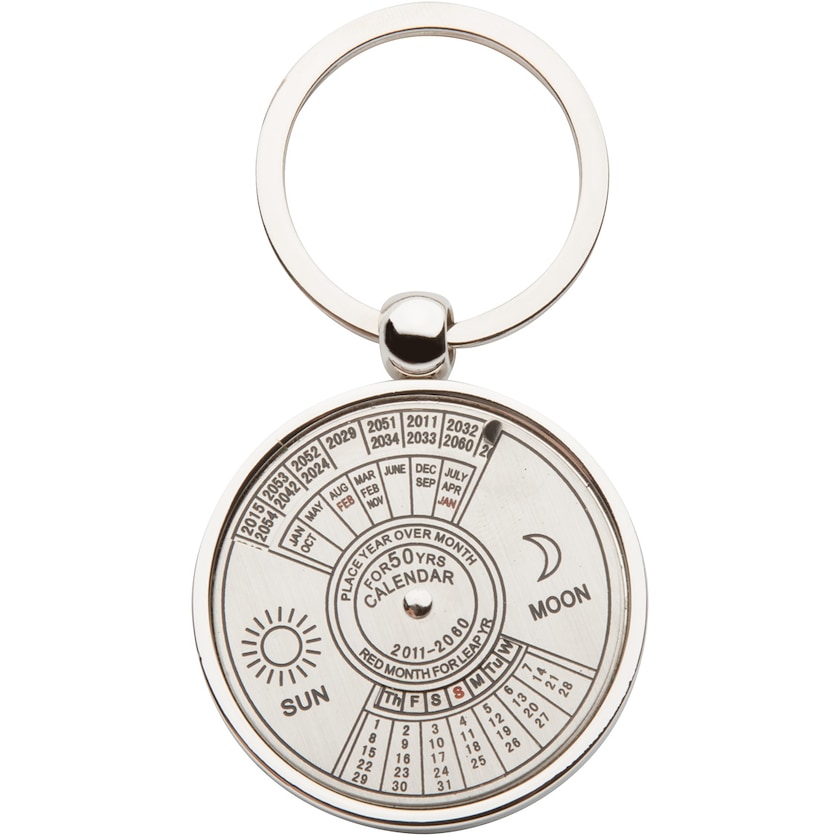 Portachiavi in metallo con calendario girevole. Il calendario arriva fino all'anno 2060. Confezionato in scatola regalo. Un regalo elegante e duraturo!