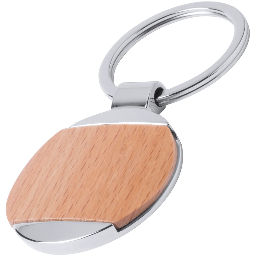 Portachiavi in metallo rotondo con inserti in vero legno. Un bellissimo portachiavi con un look unico!