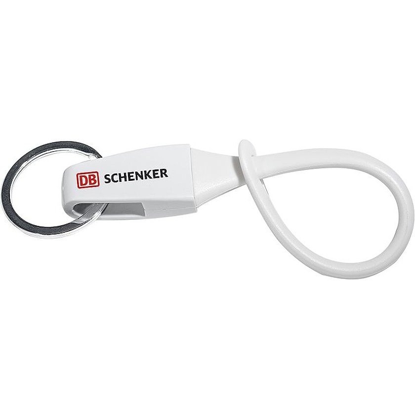 Portachiavi con laccetto da polso in silicone. Personalizzabile con stampa sulla parte di plastica del portachiave.