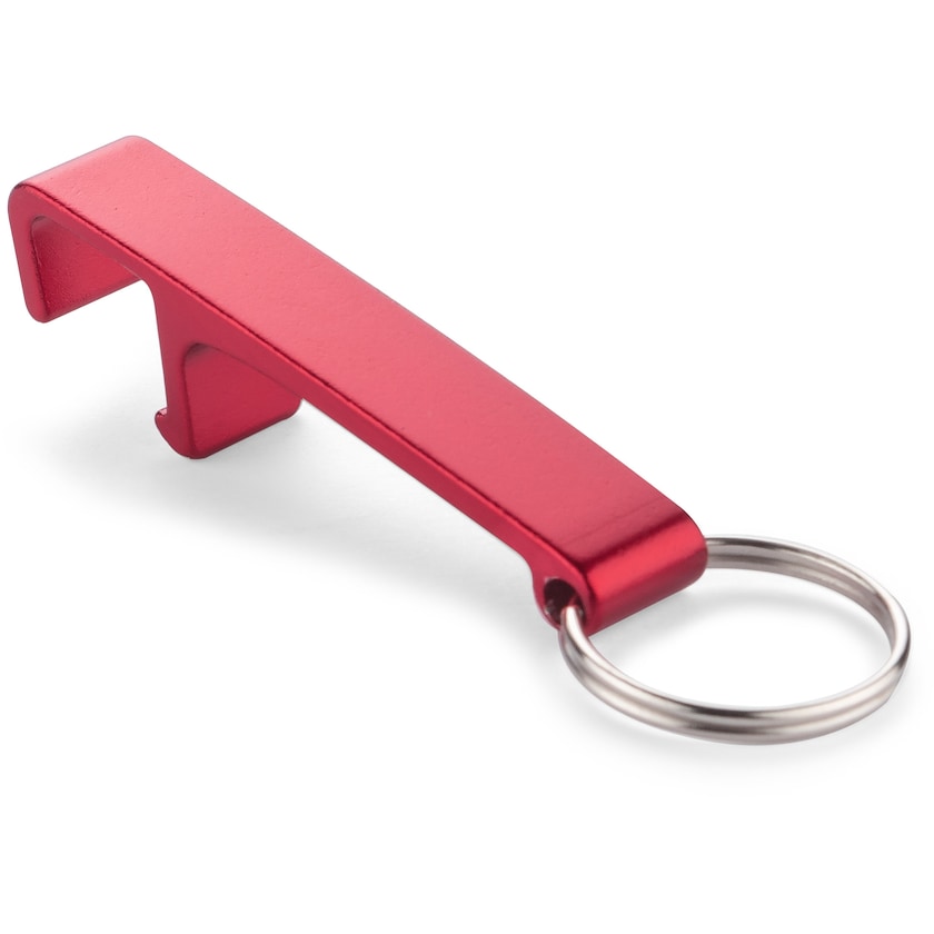 Piccolo apribottiglie che funge anche da supporto per cellulare. L'anello in metallo permette di attaccarlo facilmente al portachiavi. Il logo viene inciso a laser.