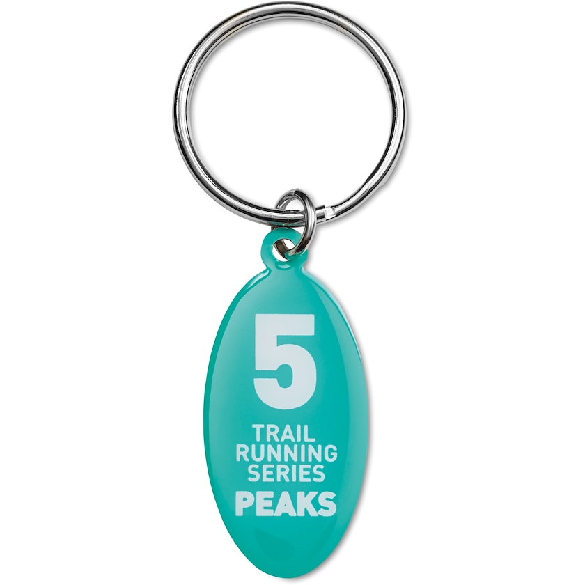 Portachiavi con logo sotto uno strato protettivo di resina epossidica. Il retro del portachiavi è realizzato in acciaio inossidabile. Le dimensioni massime sono 55 x 35 mm (escluso l'anello del portachiavi). Come opzione è possibile ricevere il portachiavi fissato a un cartoncino in carta da 300 grammi per 0,25 €/pz. Il cartoncino viene personalizzato con stampa digitale su entrambi i lati e può misurare al massimo 12 x 6 cm.
