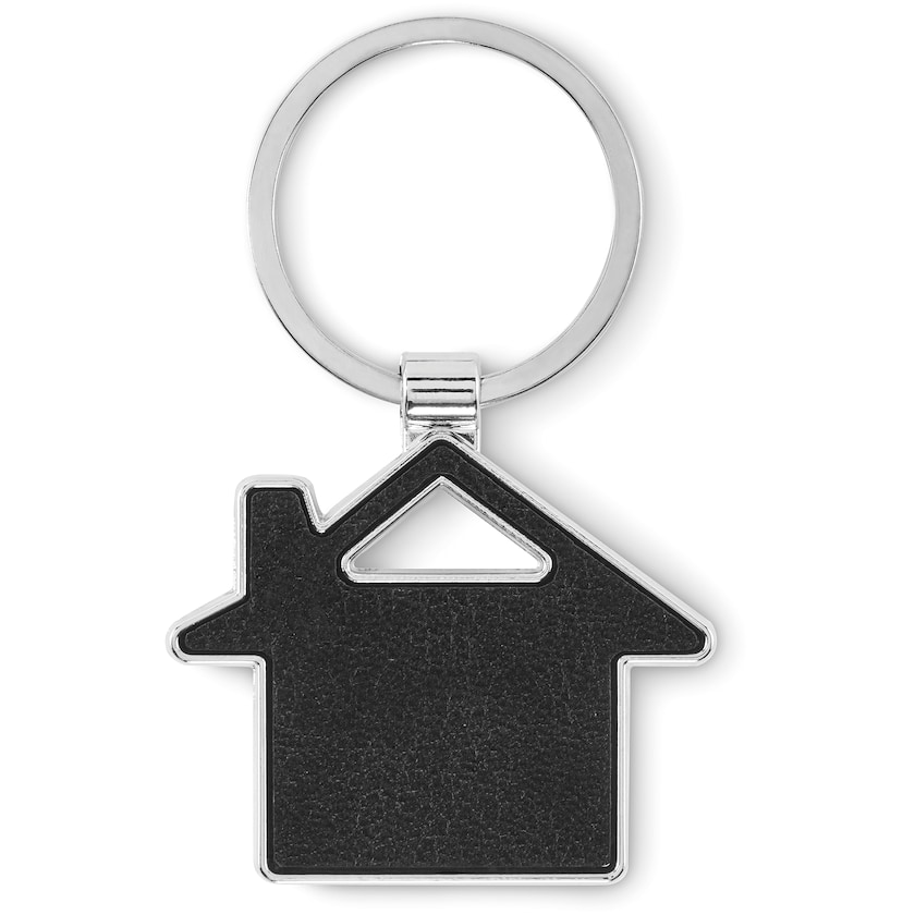 Portachiavi a forma di casa in metallo e simil pelle riciclata. Un portachiavi esclusivo perfetto per ad esempio agenzie immobiliari.
