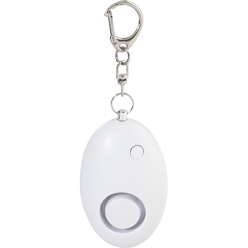 Allarme antiassalto con portachiavi. Safety è realizzato in ABS riciclato. L'allarme si attiva tirando fuori il perno. L'allarme suona con circa 100 dB. Safety è anche dotato di una luce LED. Alimentato con batterie a bottone.