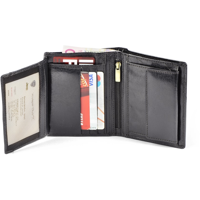 Portafoglio in pelle di altissima qualità e dalle linee pulite. Il modello Conrad ha un portamonete, due scompartimenti per le banconote, quattro tasche per le carte di credito, cinque tasche per gli scontrini ed uno scompartimento con chiusura zip. Confezionato in elegante scatola in legno. Questo portafoglio ha una speciale protezione tecnologica che blocca i segnali RFID, impendendo che qualcuno si possa impossessare dei dati della vostra carta di credito. Personalizzabile con logo in rilievo direttamente sulla pelle.