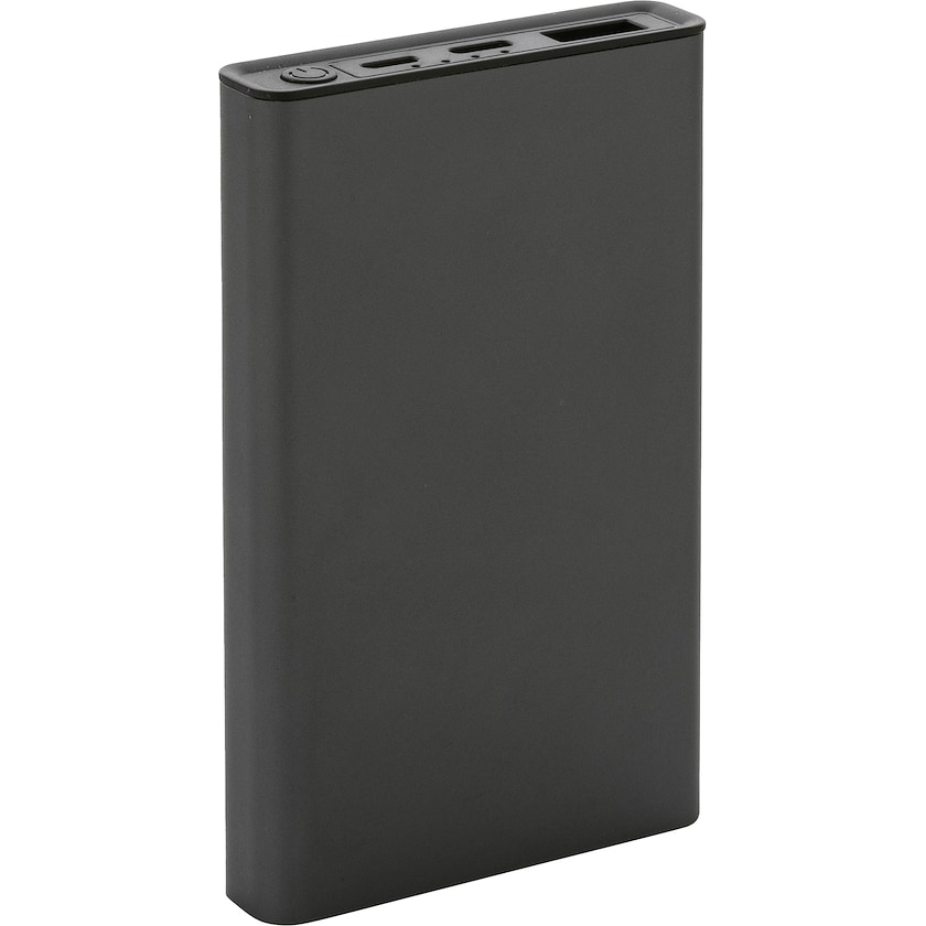 Powerbank ecologico in materiale riciclato. L'indicatore di corrente mostra il livello di energia e quindi indica quando è necessario ricaricare il powerbank. Viene consegnato all'interno di una confezione regalo di cartoncino certificato FSC.