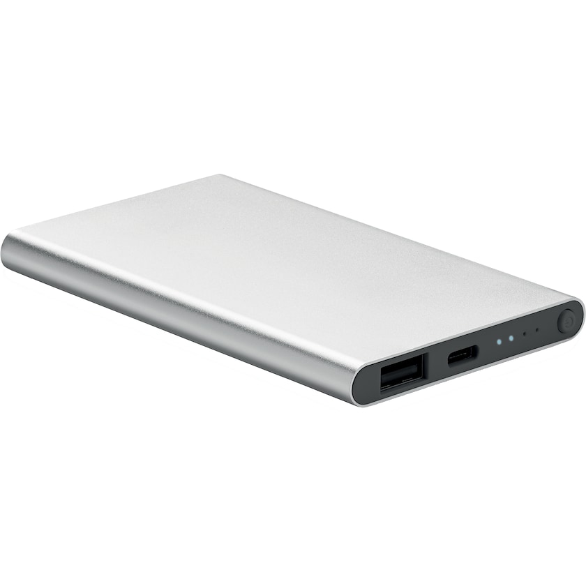 Powerbank sottile in alluminio. Viene consegnato insieme a un cavo micro USB. Supporta le modalità di ricarica veloce di ultima generazione.