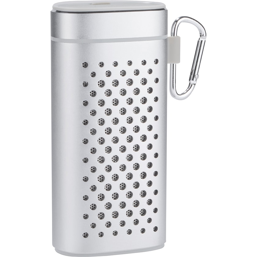 Powerbank con altoparlante wireless. La musica può essere riprodotta tramite Bluetooth (versione 4.2), cavo da 3,5 mm (non incluso) o scheda micro SD. Middleton è impermeabile IPX4, ovvero può resistere a spruzzi d'acqua fino a 10 litri al minuto. Quindi una leggera pioggia non è un problema! Powerbank è conforme a tutte le direttive UE pertinenti, è marcato CE e ha una garanzia di un anno. Cavo micro USB incluso. Ingresso: 5V / 1A, uscita: 5V / 2A. L'altoparlante ha una capacità di 5 W e ha un'autonomia di riproduzione fino a 15 ore.