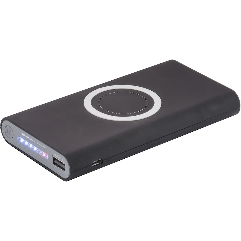 Powerbank estremamente potente con caricabatterie senza fili. Oltre che senza fili, la ricarica può avvenire anche via cavo micro-USB oppure tipo C-USB. Input: 5V/2,1A, output: 5V/2,1A.