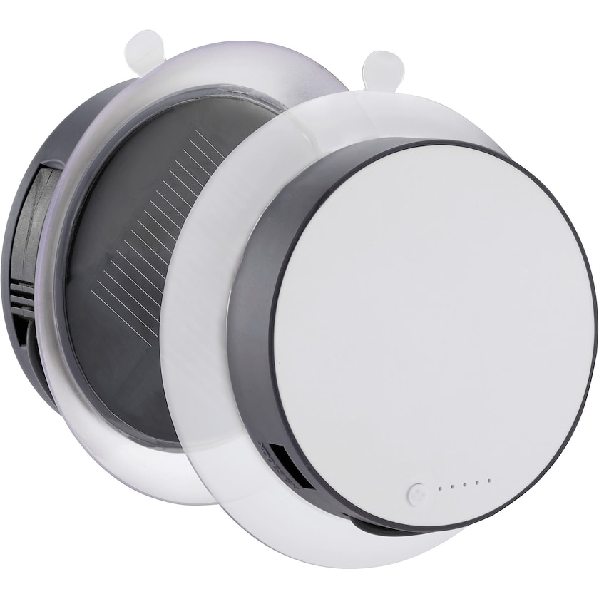 Power Bank con energia solare che viene fissata alla finestra per la ricarica più veloce. Grazie alle ventose può essere attaccata a finestre in macchina o aereo. Design registrato®. Consegnata in una confezione regalo carina.