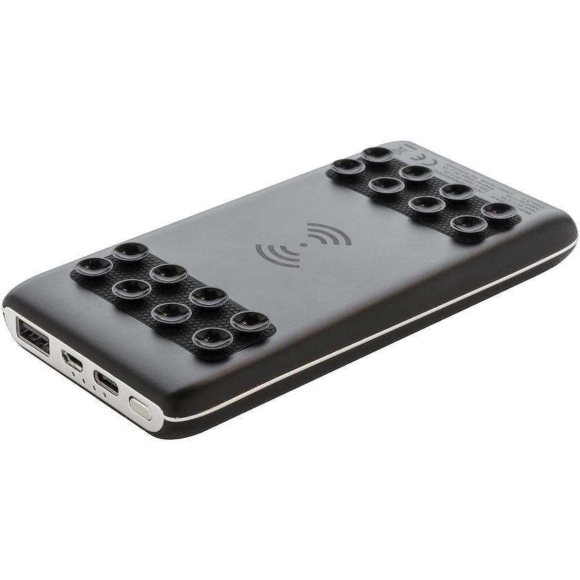 Potente powerbank con incisione laser che si illumina durante l'uso. Riley ha ventose integrate che permettono di attaccarlo al telefono. Il caricamento può avvenire oltre che senza fili anche con cavo USB o di tipo C. Output: 5V/2,1A, input: 5V/1,5A. Output senza fili: 5V/1A 5W. Design registrato®.