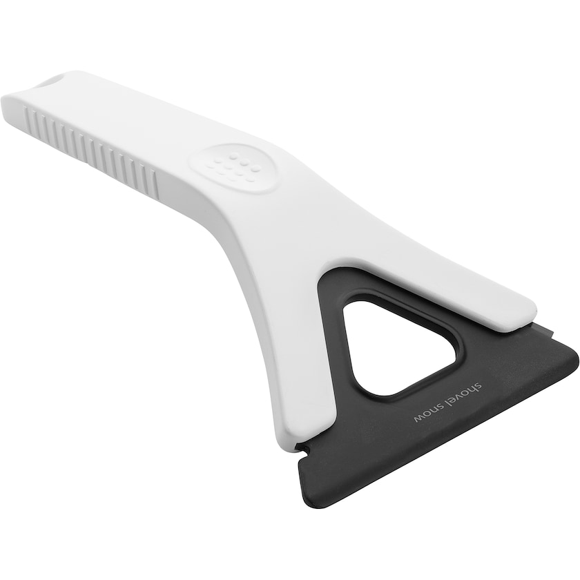 Raschiaghiaccio 3 in 1 in polistirene riciclato. Il raschiaghiaccio ha una testa regolabile che rende possibile raschiare il ghiaccio, eliminare la neve e eliminare l'acqua.