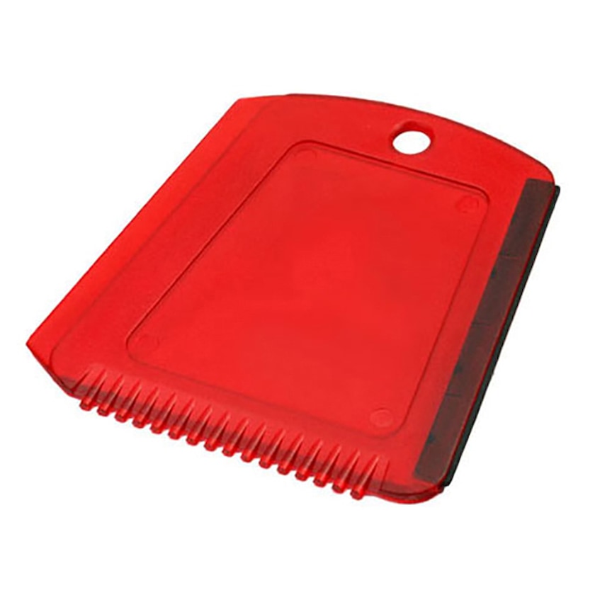 Raschiaghiaccio con guarnizione in gomma. Questo raschiaghiaccio è dotato di un lato dentato e di uno liscio per rimuovere tipi diversi di ghiaccio.