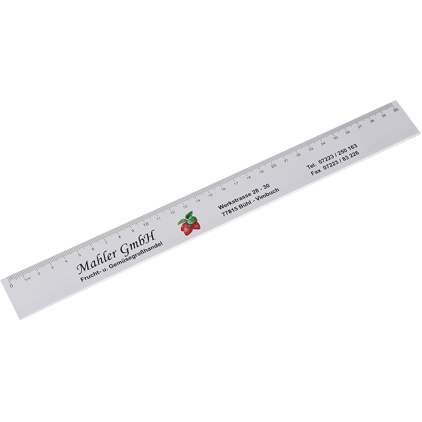 Righello in alluminio da 30 cm, di alta qualità. Questo righello è estremamente stabile grazie ai bordini sul retro. Ordina il tuo righello di alluminio con logo da Axon Profil!