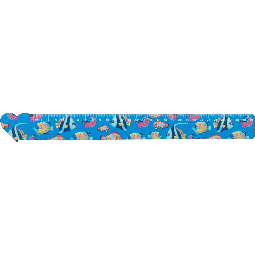 Righello lungo 30 cm disponibile in tre forme diverse. L'intero lato superiore viene stampato secondo i tuoi desideri. Scarica il modello di stampa e crea il tuo design! Il righello è realizzato in plastica pieghevole.