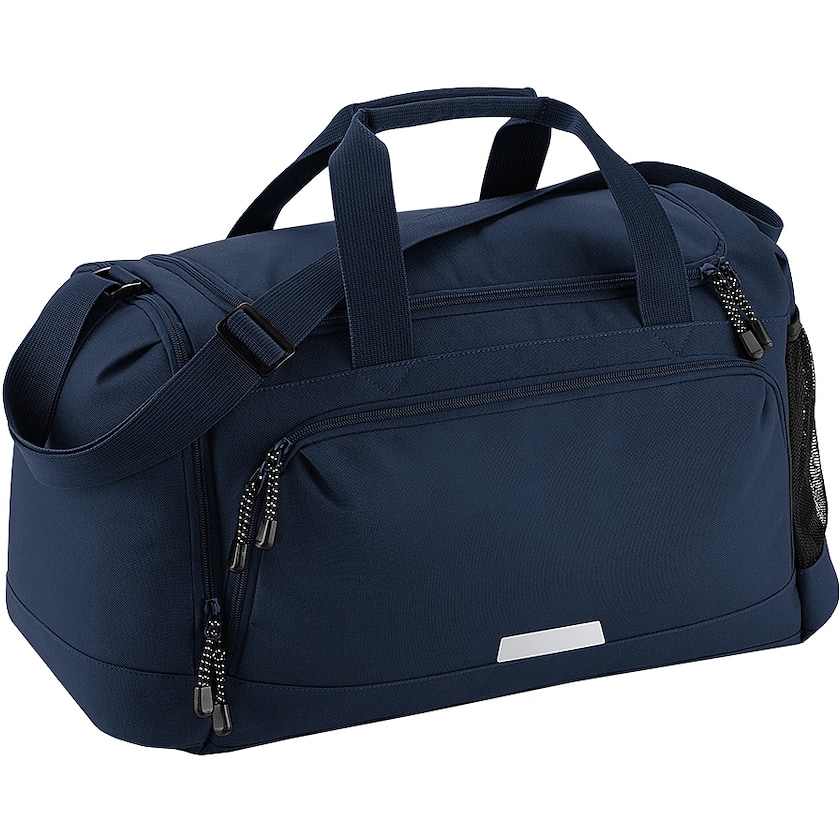 Piccola borsa sportiva d'alta qualità. Sul fronte dispone di una tasca con zip ed una striscia riflettente. Su un lato della borsa si trova una tasca a rete per la vostra borraccia. Manici imbottiti per un maggiore comfort. All'interno ha un'etichetta per il vostro nome.