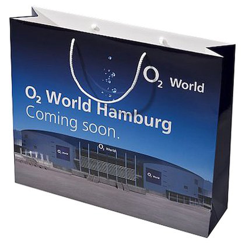 Borsa in carta esclusiva, fatta a mano, in misura media. I manici di corda e la finitura patinata lucida rendono questa borsa particolarmente prestigiosa. La borsa ha il bordo superiore rinforzato ed il fondo in cartoncino rigido, che la rende particolarmente pratica durante l'uso. Puoi personalizzare tutti i lati della borsa e scegliere un colore diverso per il cordoncino (tra quelli disponibili). La stampa fino ad un massimo di 3 colori è realizzata secondo la scala Pantone; dai quattro colori in su in quadricromia. Questa borsa è prodotta all'interno dell'UE.