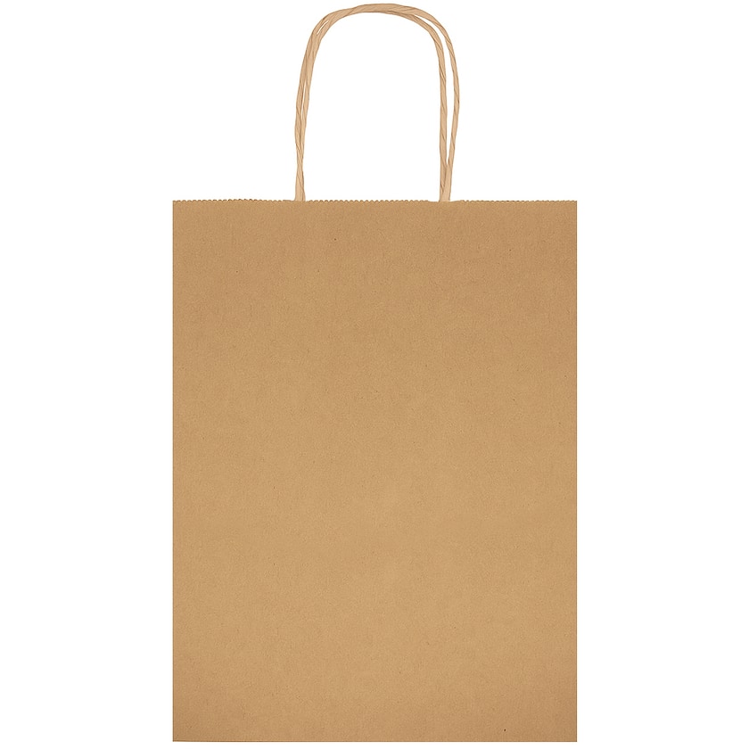 Sacchetto di carta con stampa digitale in carta riciclata color naturale. I manici sono rinforzati. Il sacchetto resiste a un peso massimo di 6 kg. Consegna rapida.