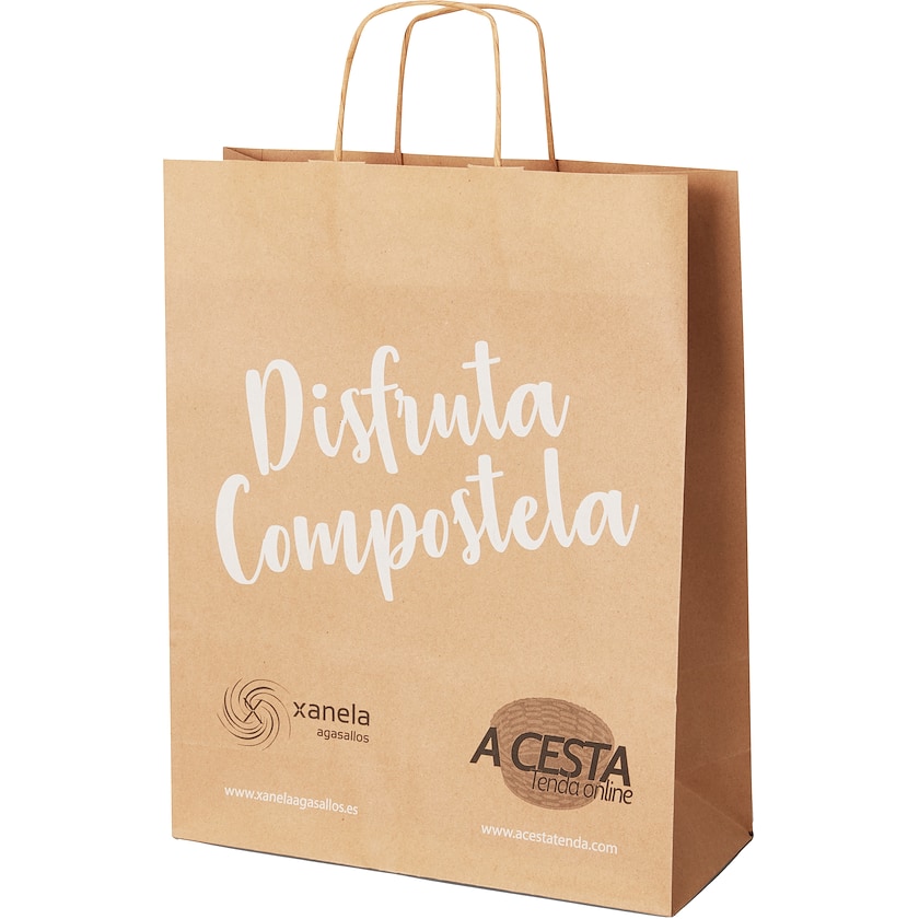 Borsa di carta non sbiancata con stampa sull'intera superficie esterna. Questa borsa di carta è prodotta con carta non sbiancata da 100 grammi. I manici sono ritorti. L'intera superficie esterna della borsa viene stampata secondo i tuoi desideri. Scarica il modello di stampa e comincia a disegnare! L'ordine minimo è di 3000 pz. La quantità prodotta può differire del +15% o -15% dall'ordine. Viene fatturata la quantità effettivamente consegnata.