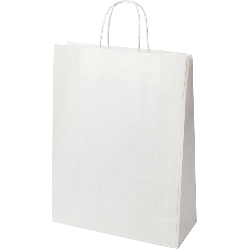 Borsa di carta spaziosa con manici di carta ritorti. Può sopportare pesi fino a 15 kg. Il prezzo di stampa si riferisce alla stampa su uno dei lati. Disponibile nei colori bianco, marrone o nero. Una borsa perfetta per il tuo negozio!