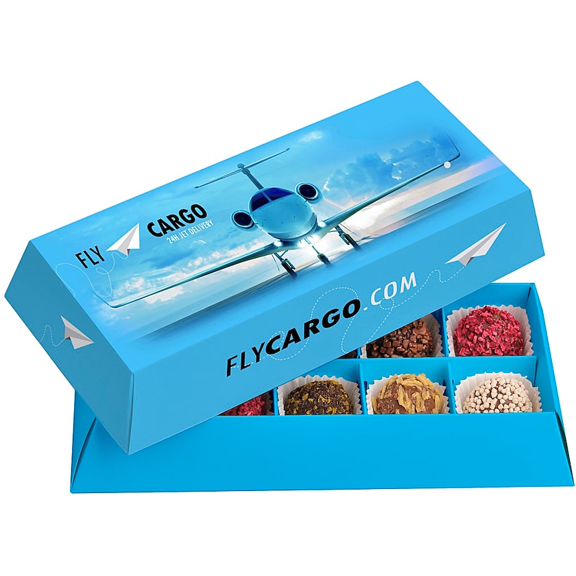 Scatola di cioccolatini con 10 praline di cioccolato di alta qualità. Ogni cioccolato pesa circa 8,5 grammi. I sapori sono misti. L'intero pacchetto è stampato digitalmente secondo i vostri desideri. Una lussuosa scatola di cioccolatini con praline di alta qualità!
