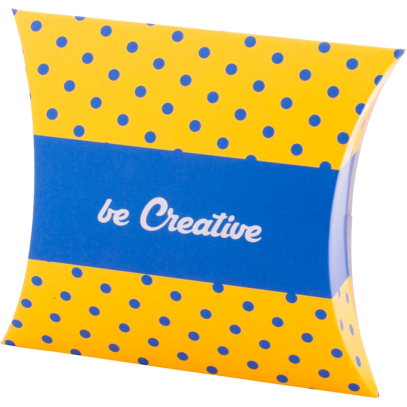 Piccola scatola regalo a forma di cuscino con chiusura. L'intera parte esterna viene personalizzata con la tua stampa. La parte posteriore è dotata di una chiusura in modo che non sia necessario chiudere la scatola con nastro adesivo. Consegnata piatta.