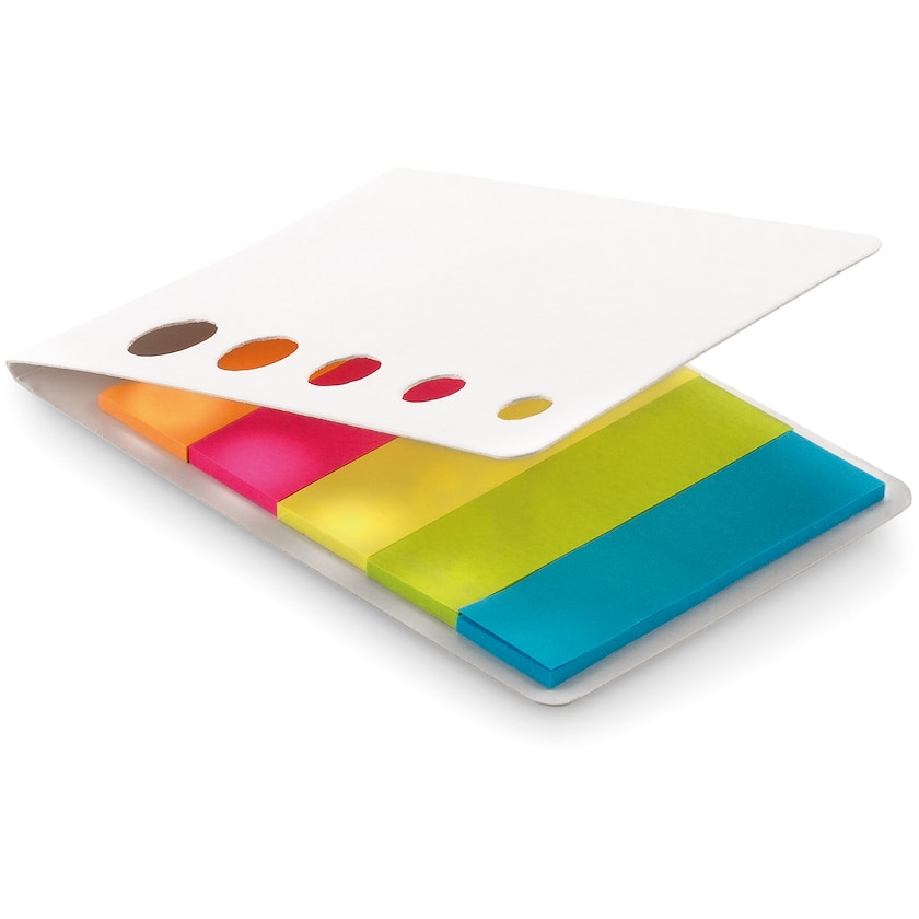 Set di segnapagina di cinque colori diversi. I segnapagina sono adesivi e perfetti per studiare. Il gadget personalizzato perfetto per gli studenti!
