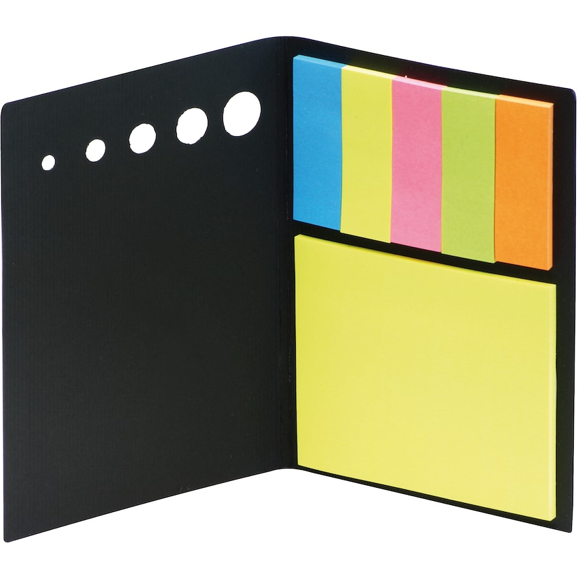 Set con blocco appunti e 5 segnapagina di colori diversi. La stampa viene realizzata sul davanti della copertina.