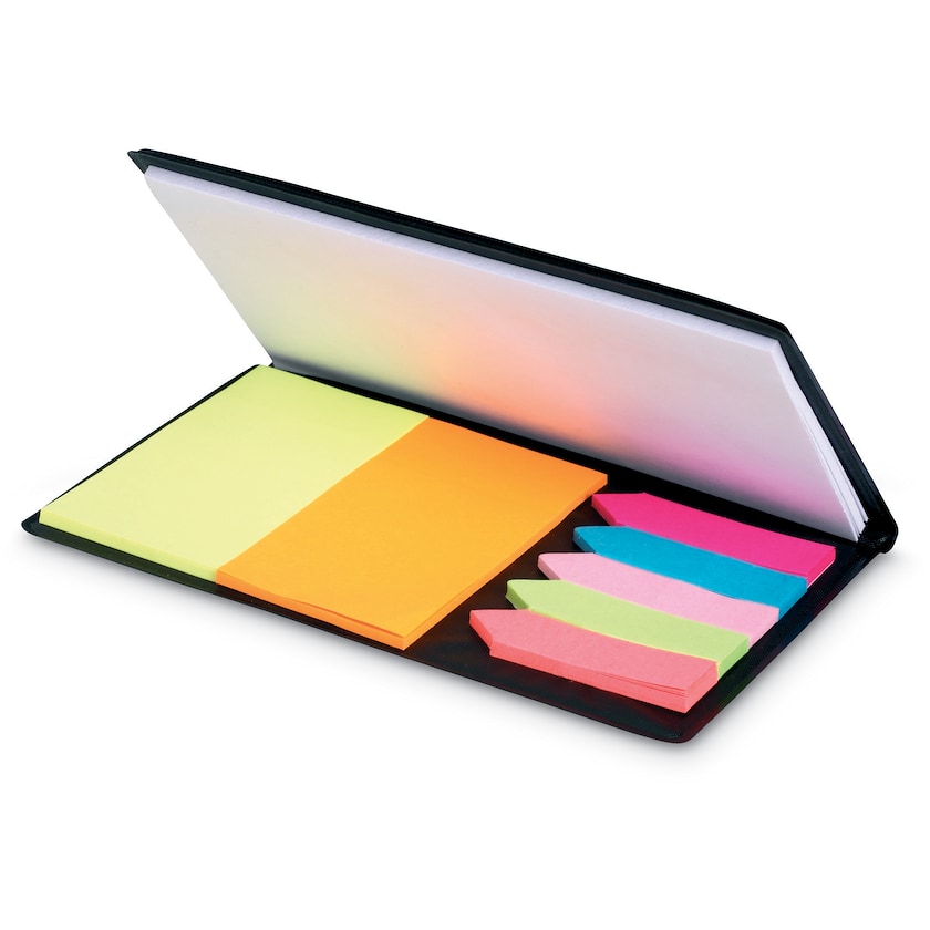 Custodia con blocco memo, blocco per gli appunti e segnapagina.