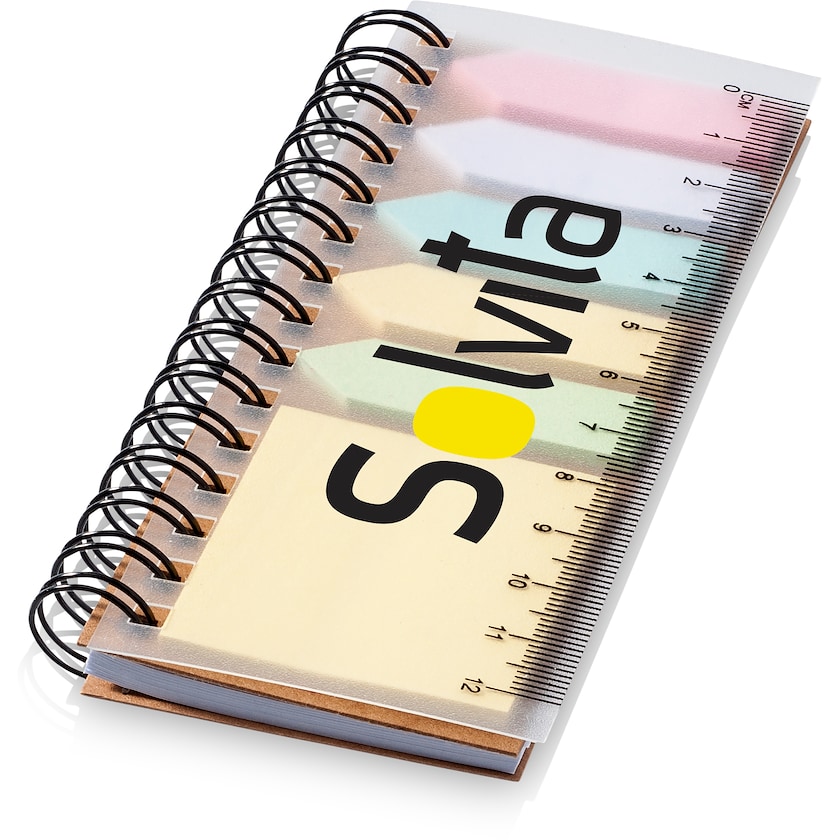 Set di segnapagine adesivi in contenitore a spirale, con bloc notes. Il modello Spirale ha 25 segnapagine adesivi di cinque colori diversi, bloc notes adesivo da 25 fogli ed un blocco da 40 pagine a righe bianche.