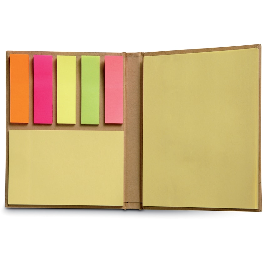 Segnapagina e blocco memo con copertina di cartone riciclato. Con segnapagina 5x25 e 2 blocchi memo da 50 e 25 pagine. Ordina i tuoi segnapagina ecologici con logo da Axon Profil!